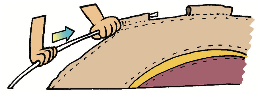 4. Make sure the tent door is zipped shut. Then, pound a stake through each loop, pulling snugly as you go so the floor gets stretched to its full size.
